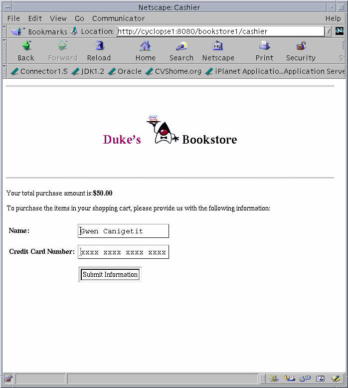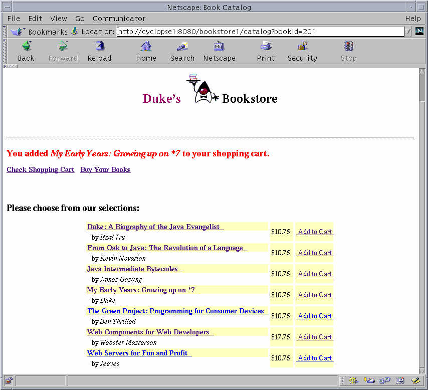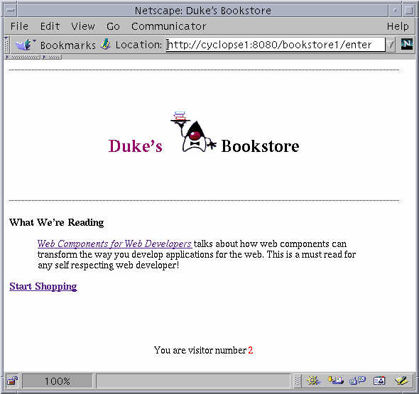 Figure 1 Duke's Bookstore: "Start Shopping" link